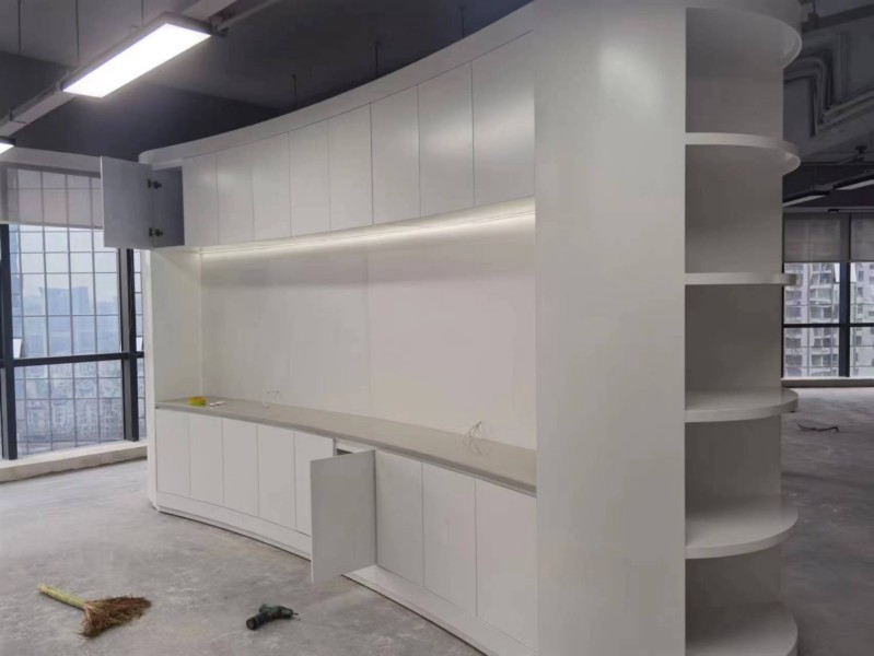 烤漆展柜現(xiàn)在安裝中